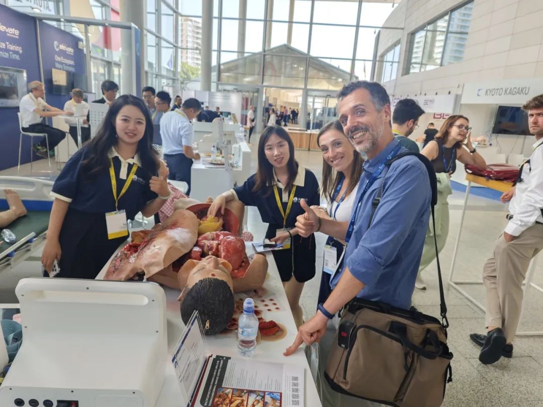 Laparotomy & Thoracotomy Damage Control Simulator became the centre of attention. When visitors touched the simulator’s thoracic cavity, the lifelike heart beating left them in awe. Featuring over 20 complete and realistic anatomical structures, it accurately replicates the position of thoracic and abdominal organs. Over 30 practical operations of damage control surgery can be performed with real surgical instruments across diverse scenarios. A French surgeon marveled, ”This is exactly like operating on a real thoracic and abdominal cavity—organs and tissues, and even simulated bleeding are stunningly authentic.” The steady stream of professionals praised its unmatched realism, calling it a revolutionary breakthrough in surgical training and teaching and a major innovation in simulated medical education.